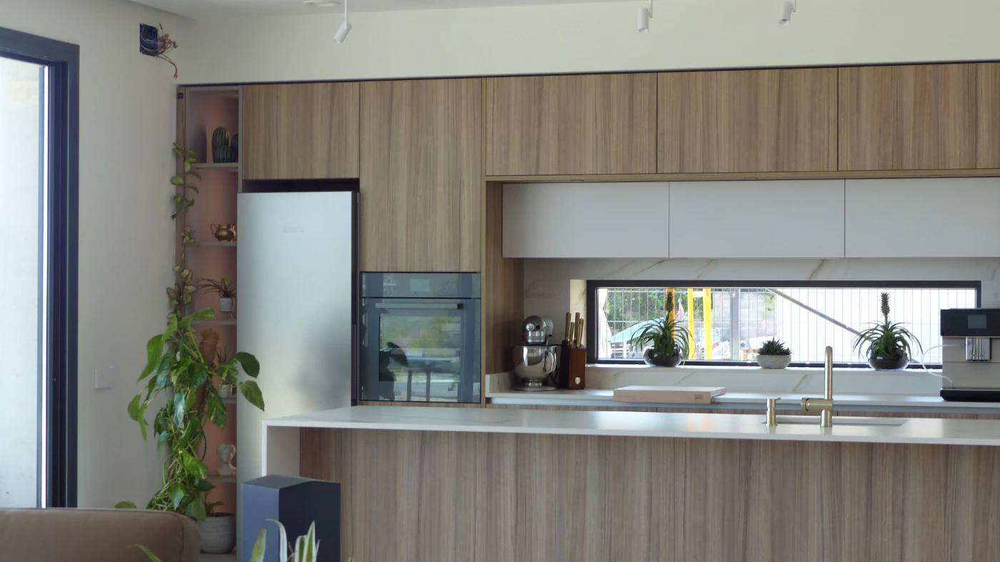 Edwin y Daniela buscaban una cocina abierta, funcional y con una estética limpia y vanguardista. En Studio Gatto tuvimos el placer de diseñar e instalar un espacio que responde a cada una de esas premisas, cuidando la simetría, la comodidad y, por supuesto, el estilo.